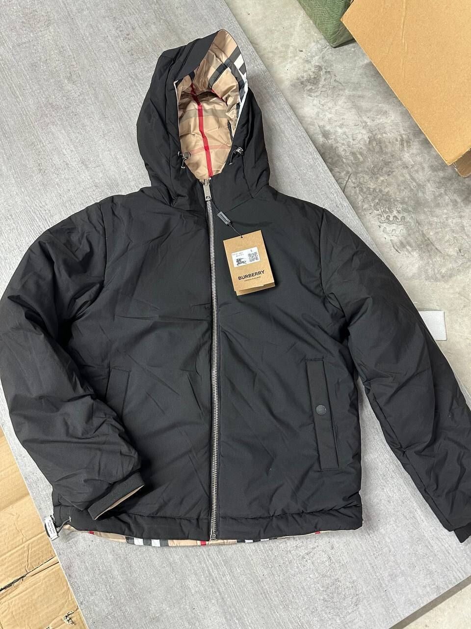 Burberry Stretton Reversible Mens Black Beige Jacket Puffer hooded Jackets Replica First Copy Flannels Fake Winter Rep Designer Men Zip Pocket Luxury Long Sleeves Best Cheapest Hoodie Discount Sale UK
