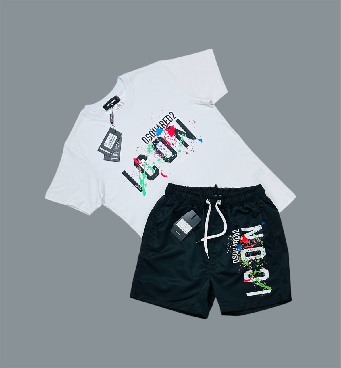 DSQUARED2 Icon Splatter T-Shirt & Shorts Sets For Men’s in Different Colors