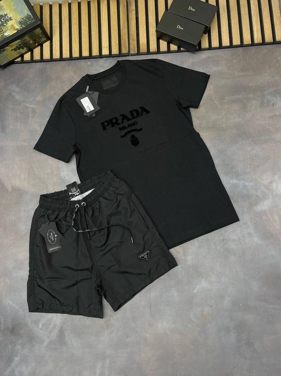 Be the first to review “Prada Milano Logo Slim Fit T-shirts Short Set”