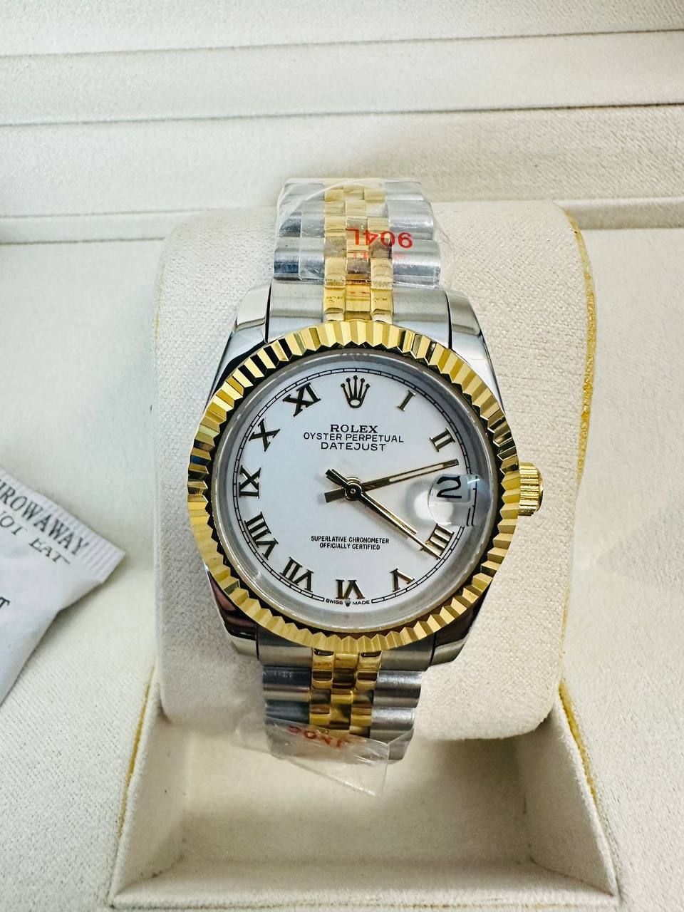 Be the first to review “Rolex Datejust Two Tone Yellow White Roman Dial Fluted Bezel Women’s Watch”